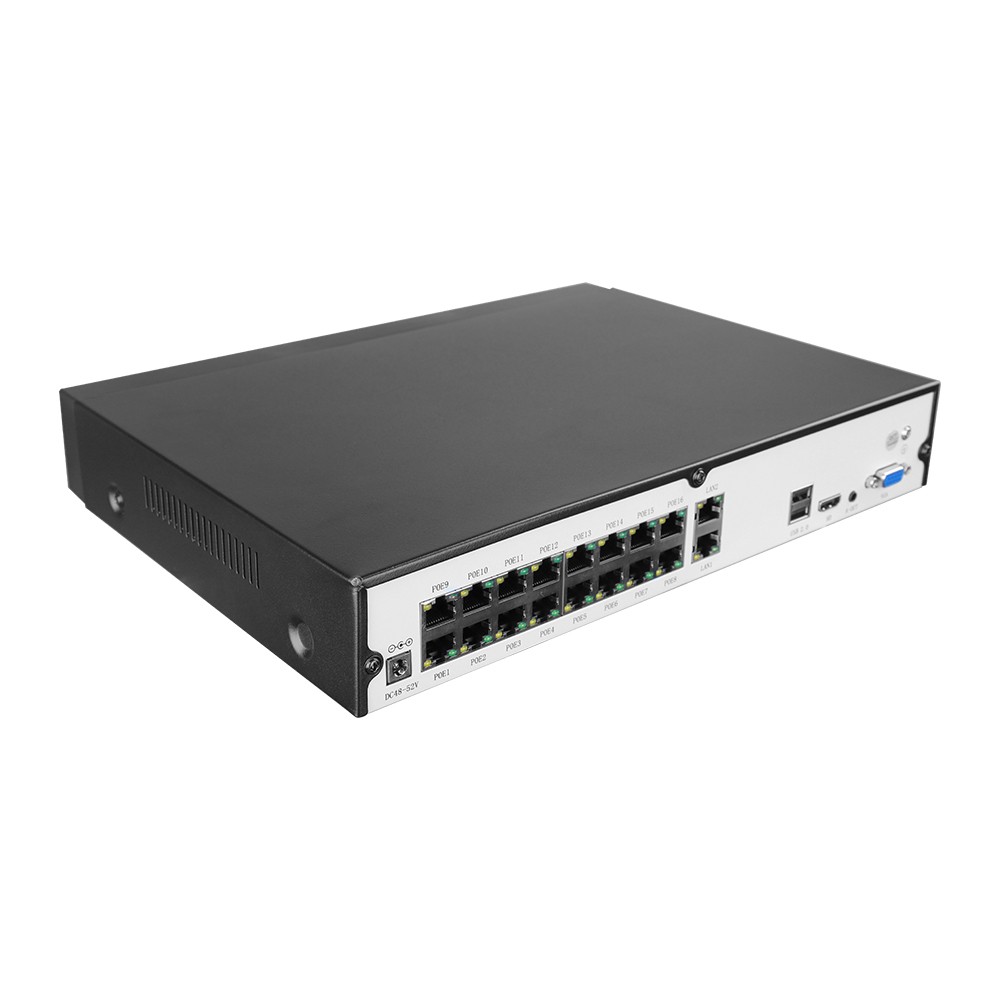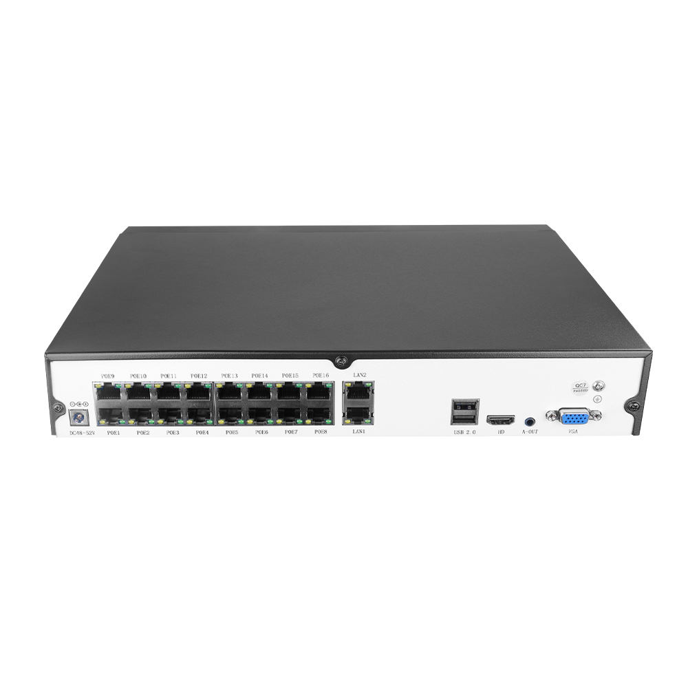 The HN-A1H8016-P16 is a high-capacity 16-channel network video recorder with 16 built-in PoE ports, making it ideal for large-scale surveillance systems. Each PoE port supplies both power and network connectivity through a single cable, reducing installation complexity and cost.